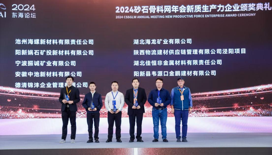 近日,2024年砂石骨料網(wǎng)年會新質生產(chǎn)力企業(yè)頒獎典禮在浙江湖州圓滿落幕,集團所屬中池公司榮獲“2024年砂石行業(yè)新質生產(chǎn)力示范企業(yè)”稱號。