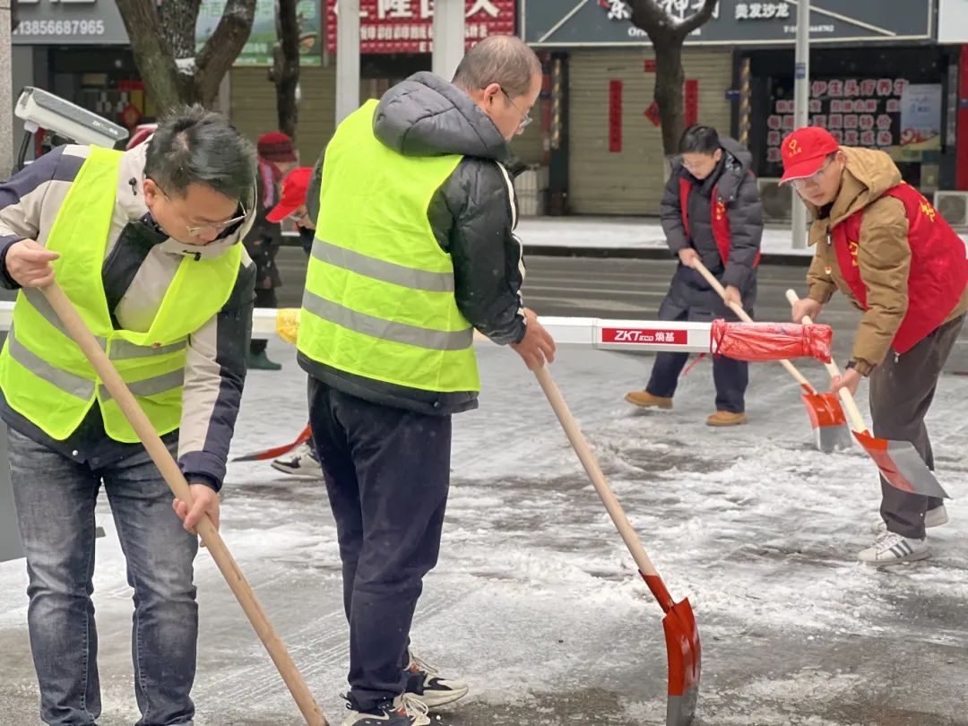 2月23日上午,孝肅街公司第一時(shí)間組織黨員和職工紛紛走上街區(qū)開展掃雪除冰活動(dòng)。寒風(fēng)陣陣,并沒有阻擋支部黨員干部和職工掃雪除冰的熱情。經(jīng)過2個(gè)多小時(shí)連續(xù)的奮力清掃,將街區(qū)人行道積雪打掃干凈,讓街區(qū)道路變得安全暢通,為市民群眾的安全出行帶來了便捷,更是傳遞了一份溫暖和正能量。