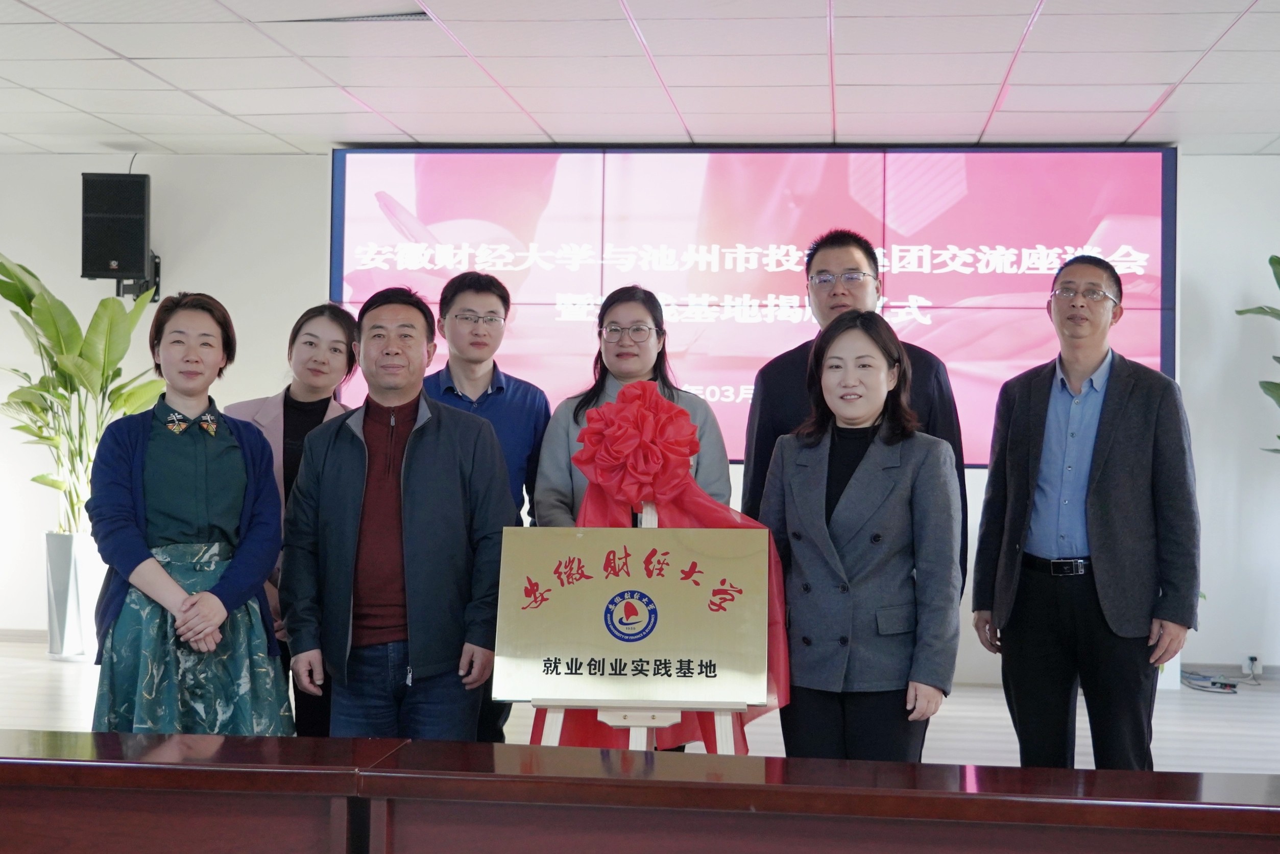 安財校黨委常委、副校長趙曉明,池州市人社局黨組成員、市人事考試指導(dǎo)中心主任章和平與集團黨委副書記、工會主席嚴(yán)艷共同為“安徽財經(jīng)大學(xué)就業(yè)創(chuàng)業(yè)實踐基地”揭牌。